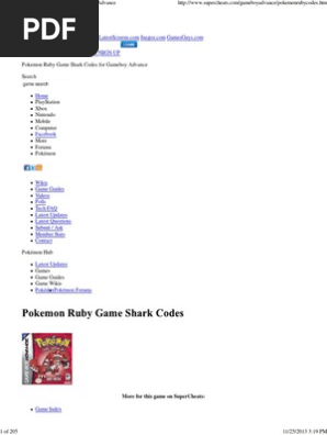 Pokemon Ruby Game Shark Codes Gameboy Advance Pokémon